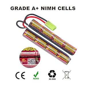 Airsoft Battery: High performance airsoft battery provide more playtime, 1600mAh 9.6v rechargeable nimh airsoft battery pack made of 8 cell 2/3A nimh batteries.