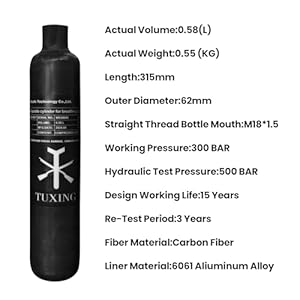 30Mpa 4500Psi 0.58L 580cc Carbon Fiber Gas Cylinder Paintball HPA Tank Hunting for PCP Air Rifle Gun Cylinder Thread M18 * 1.5