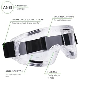 ANTI-FOG LENS: Our V-1000 protective goggles come with an advanced anti-fog coating that promises to prevent fogging, ensuring clear vision at all times.