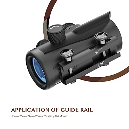 Wide field of view: 5 MOA Red scopes with 30mm reflex lens aperture provides a wide field of view of (19m at 100m),suitable for aim and instant lock on target and rapid moving things. Unlimited field of view offers target scanning over the total field of engagement.
