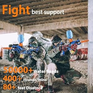 🔫【Long Distance and Large Ammo Capacity 】The High Performance gel ball blaster has a very long shooting range, up to 80 -100 feet. It may be shoot about 1000 to 1500 rounds frequently, Holds 600 rounds at a time. The Large capacity and long shooting range can come up with a very real and fun experience.