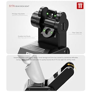 Aiming Mode: With CQB & precision modes, switchable by flipping the rear sight, both with an eye-catching fiber-optic dot to assist in aiming; whether it’s long range or close up, the sight is adaptable to a much wider variety of environments and usage habits