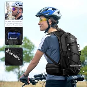 🚵♂️【Design for Biking】 8L cycling backpack has a main bag compartment bag that can accommodate a 2 L hydration bladder, and two magic velcro fastening straps for fixing holes in the water bag. Double shoulder straps top hole for passing a drinking tube through, and each strap lower side has durablely fixed tube straps.
