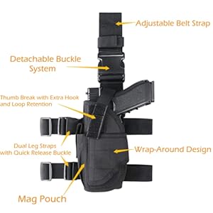 Gexgune tactical left leg holster pistol holster thigh holster with magazine pouch weapon holster for hunting, airsoft, military games, paintball, training or cosplay