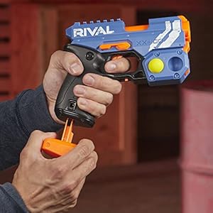 NERF RIVAL POWER IN A COMPACT SIZE — Knockout XX-100 blaster packs high-intensity Nerf Rival power in a compact size that’s great for fast-moving games and stealthy surprises