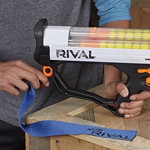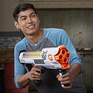 The blaster has an easy-load integrated magazine that holds up to 60 rounds.