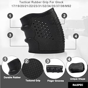 ENHANCED GRIP AND CONTROL – These textured soft rubber covers offer a more comfortable and efficient anti slip grip on your handgun. The grips cover the existing hard plastic handle and have raised finger grooves for a more secure and solid hold.