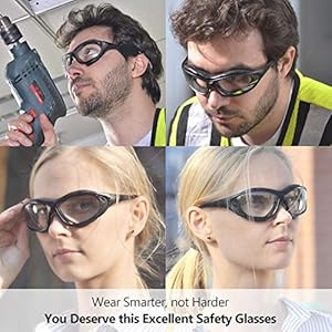 ✅ [ANTI FOG LENS]: Foam lined safety glasses eye protection lens with special coating, our protective eyewear is highly anti fog coating, will not fog up and protects against harmful UV rays.Clear lens with Anti-Fog coating prevent safety goggles from water steam fog for DIY,grinding,chainsaw,soldering, resin work, Cycling, motorbike, aviator, ski snowboard , motorcycle, pilot, snowboard, mines, warehouses, wharves,construction,designer, electricians, engineers,machining and other industries.