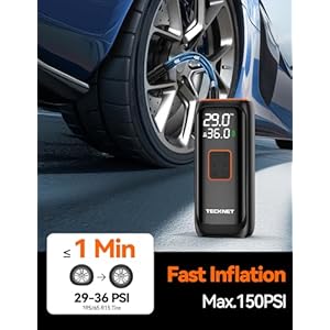 TECKNET Tyre Inflator Portable Air Compressor, 6000mAh & 150PSI Electric Air Pump with LED Light, Accurate Pressure LCD Display, Cordless Mini Trye Pump Fast Inflation for Car, Motorcycle, Bike, Ball