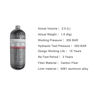TUXING 30Mpa 4500Psi 2L Carbon Fiber HPA Tank, Gas Cylinder, Paintball Hunting for PCP Air Rifle Gun Daystate,Thread M18 * 1.5