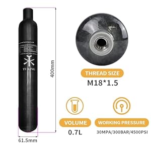 TUXING 4500Psi Pcp Air Tank 0.7L 42Cu in 700cc Carbon Fiber HPA Tank,Gas Cylinder,Paintball Hunting for PCP Air Rifle Gun Daystate and FX Thread M18 * 1.5