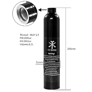 TUXING Aluminum Paintball Air Tank, High Pressure Air Tank 0.3L 18Ci Capacity, Diving Cylinder High Pressure Air Bottle for Paintball or PCP AirGuns (empty bottle) M18*1.5