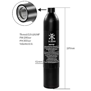 TUXING Aluminum Paintball Air Tank, High Pressure Air Tank 0.5L 31Ci Capacity, Diving Cylinder High Pressure Air Bottle for Paintball or PCP AirGuns (Empty Bottle) (5/8-18UNF)
