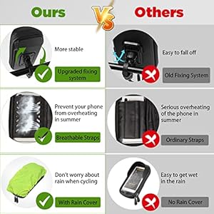 WATERPROOF BIKE PHONE BAG – The cycle phone holder is made of waterproof fiber material with a sealed double zipper closure design, which completely protects your smartphone from rain or dust. Free rain cover provides double protection all over heavy rains. All-in-one design with 3D die-casting process makes it hard and pressure-resistant for longtime use. Ideal for Moutain bike, motorbike, bicycle, E-Bike and so forth.