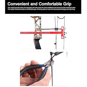 Convenient and Comfortable Grip: The nocking buckle pliers are equipped with alloy jaws for quick installation and removal of the nocking buckle. The rubber care for provides a comfortable grip, ensuring ease of use and reducing hand fatigue right through tuning.