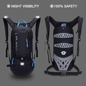 ♥ 10L cycling backpack, the ultimate waterproof and tear resistant nylon fabric. Can be utilized as a drinking bag, suitable for 2 liters of water reservoir, special hole design for water bag (drinking bubble isn’t included).