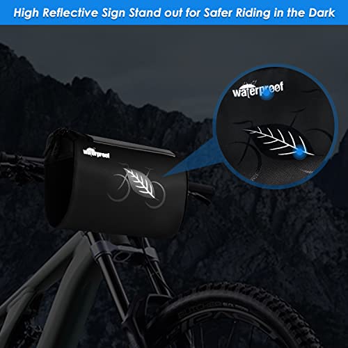 WOTOW Bike Handlebar Bag, Waterproof Bicycle Handlebar Front Frame Storage Basket with Reflective Transparent Water Resistant Touch Screen Phone Holder Mount for Men Road MTB Outdoor Accessories, 3L