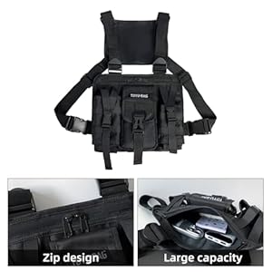 👜Large Capacity – 3 compartments on the front of the bag, suitable for most of the people.Comfortale tactical harness chest kit with adjustable straps, suitable for women and men. Modular design with large main compartment,front zippered pocket. H harness bag for men lets you wear the kit bag by itself or underneath of a pack